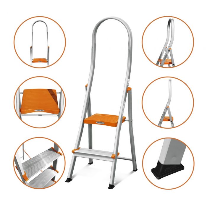 - Благодаря специальному алюминиевому сплаву и форме профиля удалось добиться рекордного показателя соотношения вес стремянки к её высоте!