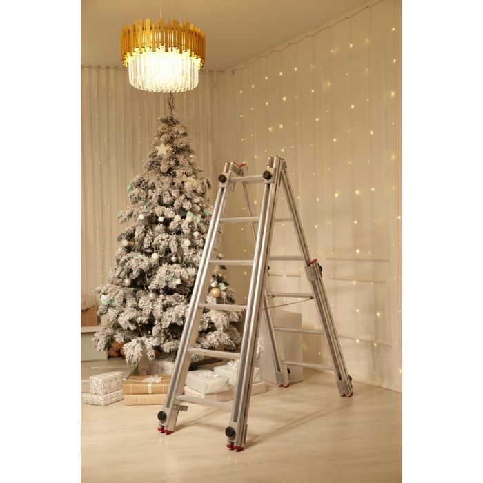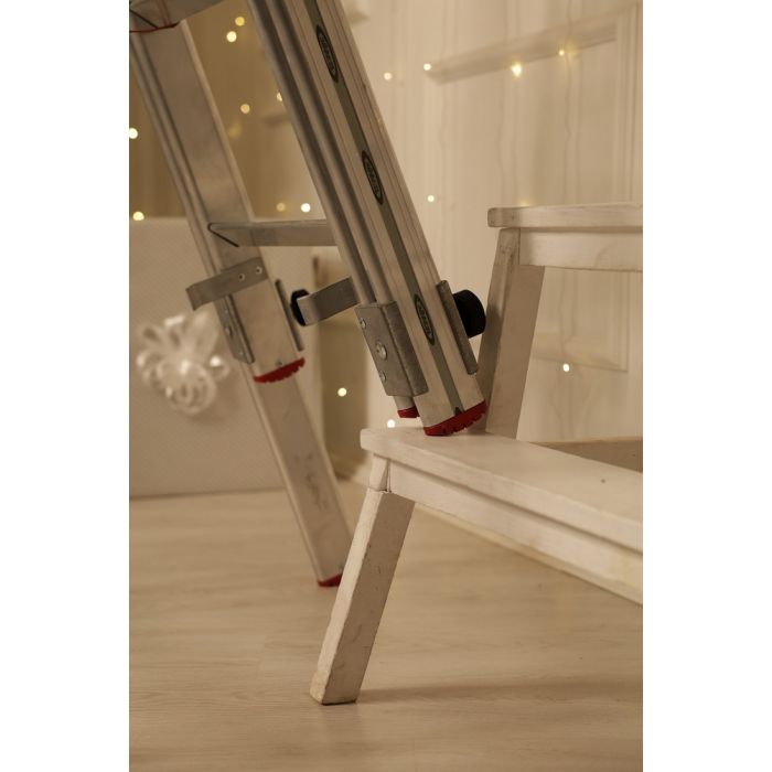 - Регулируемые опоры: возможность регулировки длины опор позволяет устанавливать стремянку на лестничных пролётах и неровных поверхностях, что делает её универсальным инструментом для различных задач.