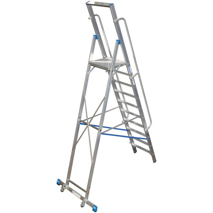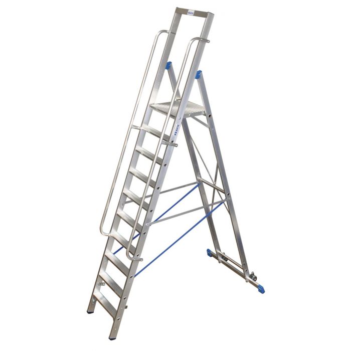 • Благодаря очень высокой (1,0 м) эргономичной дуге безопасности со встроенным отделением для инвентаря работа на этой лестнице не требует больших нагрузок на позвоночник