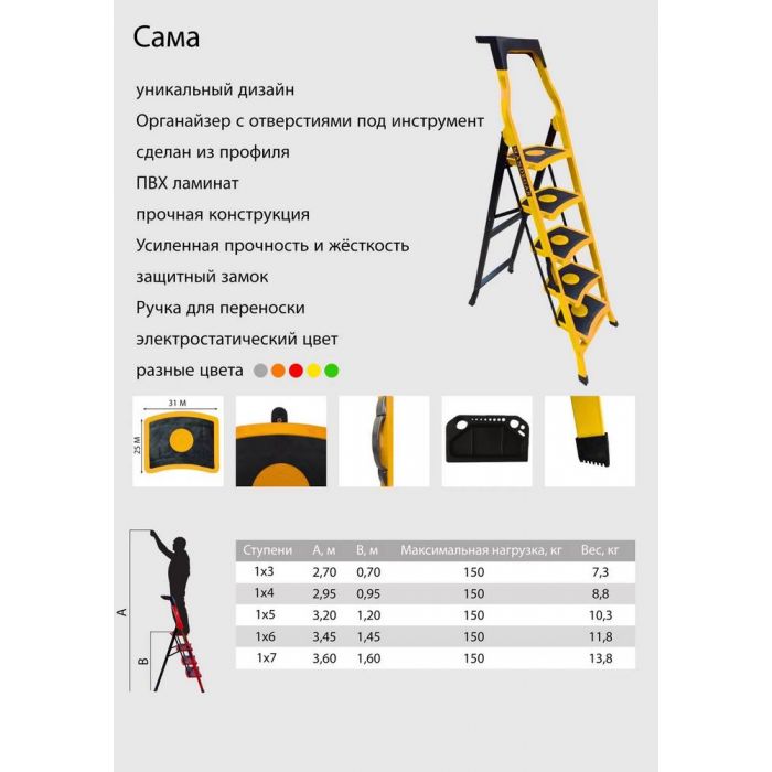 Стремянка изготовлена из стального профиля 40х20 мм. с широкими ступенями и лотком для инструментов. Эта надежная стремянка идеально подходит для домашних ремонтных работ и профессионального использования. Не забудьте учесть её при выборе инструментов для вашего проекта!Особенности: