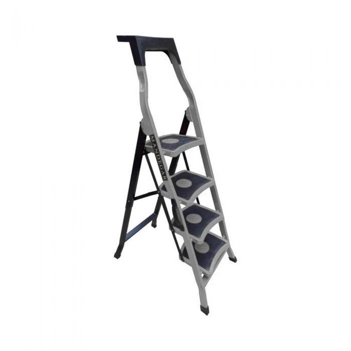 Стремянка стальная Mandegar SAMA серого цвета с 4 широкими ступенями