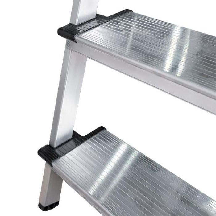 - Прочное крепление ступеней к боковинам шестью заклёпками для более высокой устойчивости конструкции