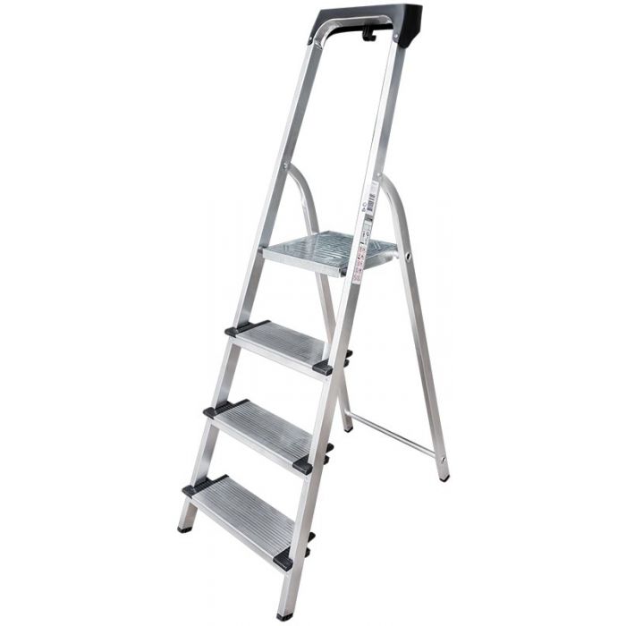 Стремянка Новая Высота 4 ступени NV1118 алюминиевая с органайзером и широкими ступенями