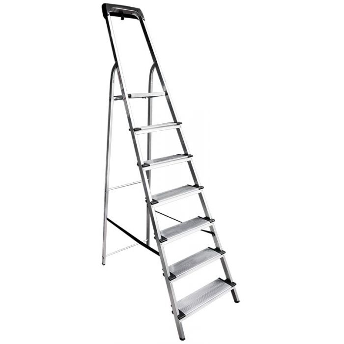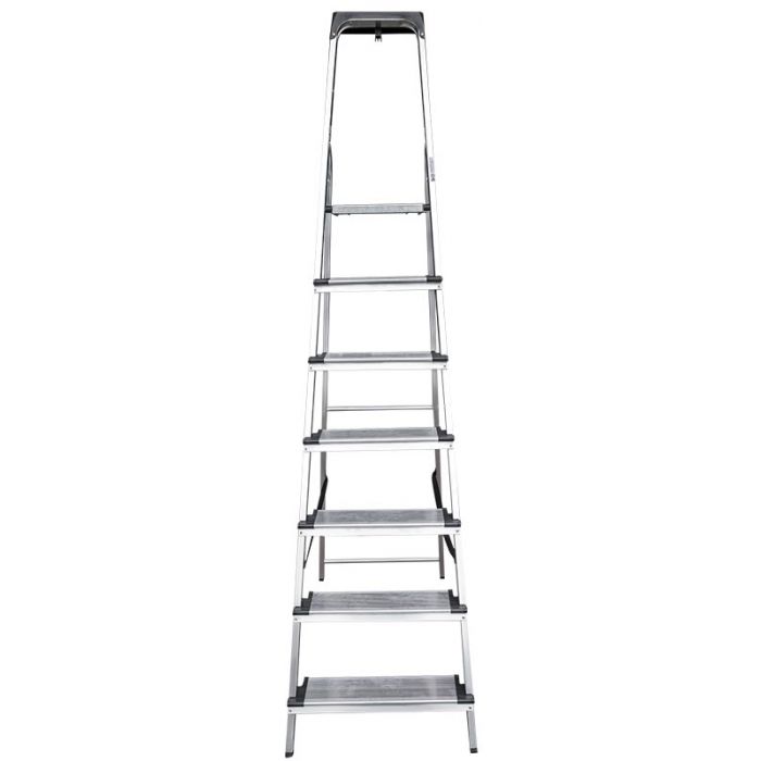 Стремянка Новая Высота 7 ступеней NV1118 алюминиевая с органайзером и широкими ступенями