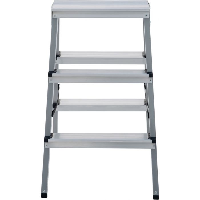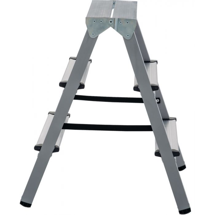 • Ориентация ступеней на обе стороны позволяет работать, не переставляя стремянку и экономя время