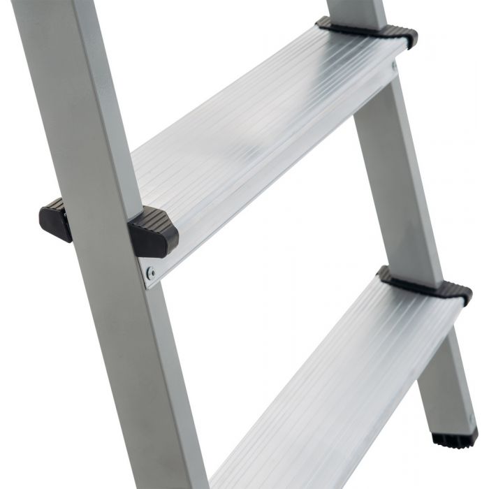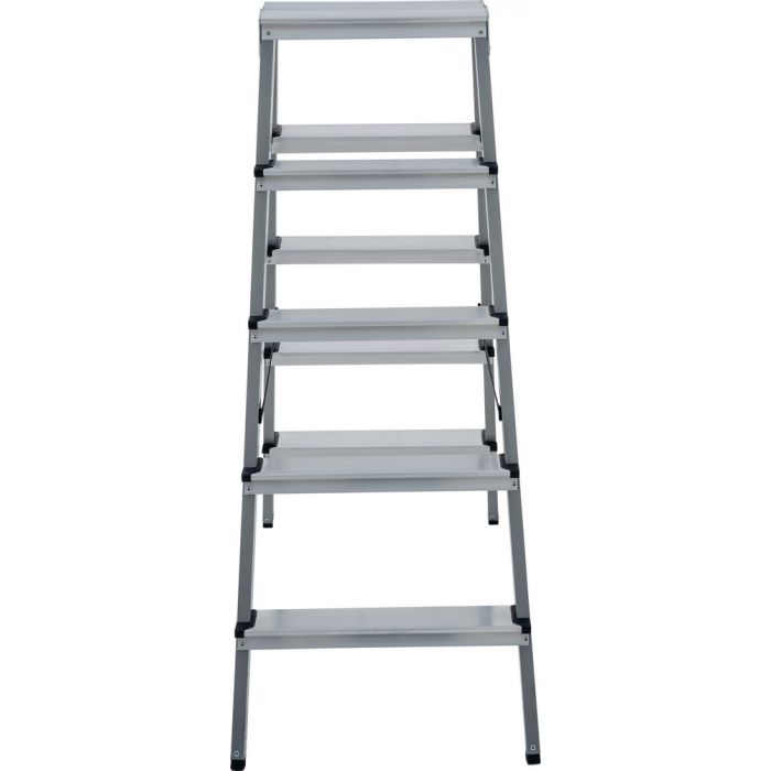 - Ориентация ступеней на обе стороны позволяет работать, не переставляя стремянку и экономя время