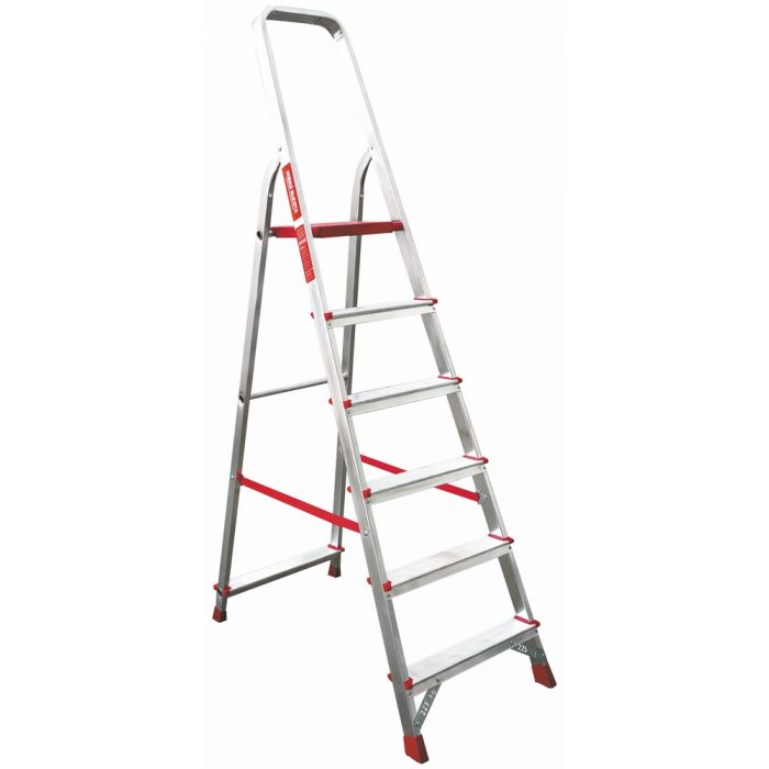 • Прочное крепление ступеней к боковинам 6 заклёпками придаёт конструкции высокую устойчивость
