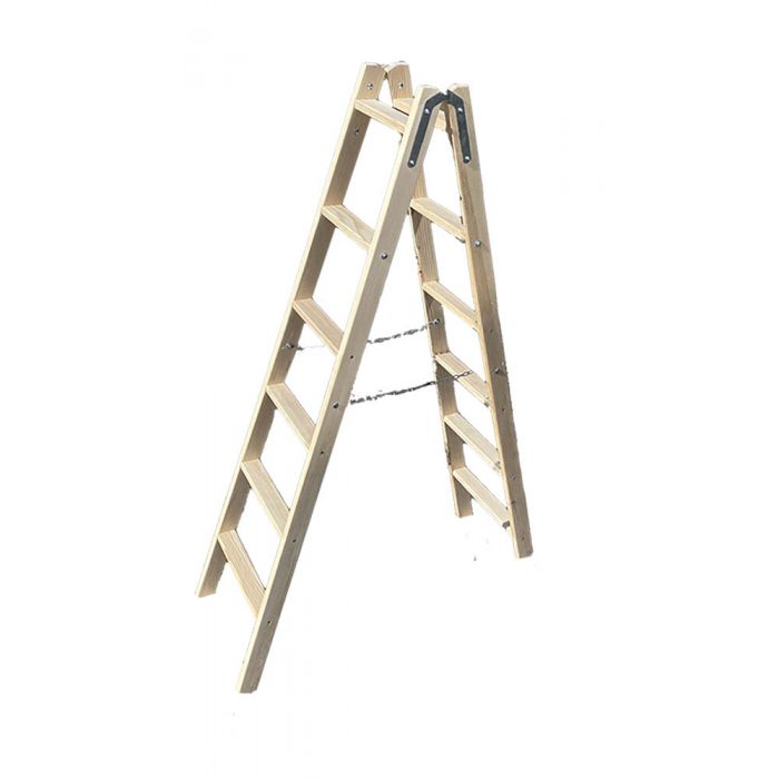 Двухсторонняя деревянная стремянка SevenBerg 2х6 Комфорт с широкими ступенями