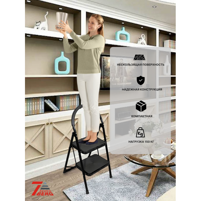 Стремянка SevenBerg Prima Lux черная 2 широкие ступени