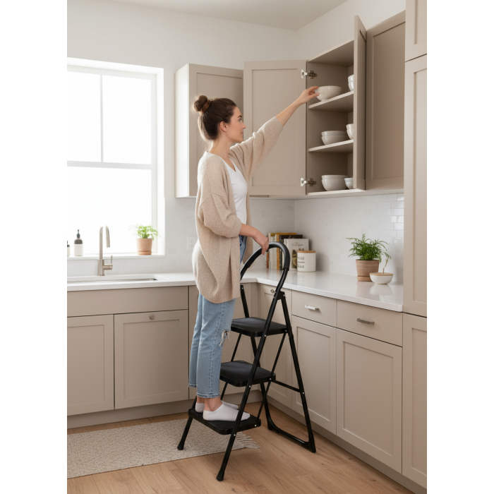 Стремянка SevenBerg Prima Lux черная 3 широкие ступени