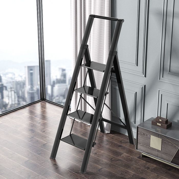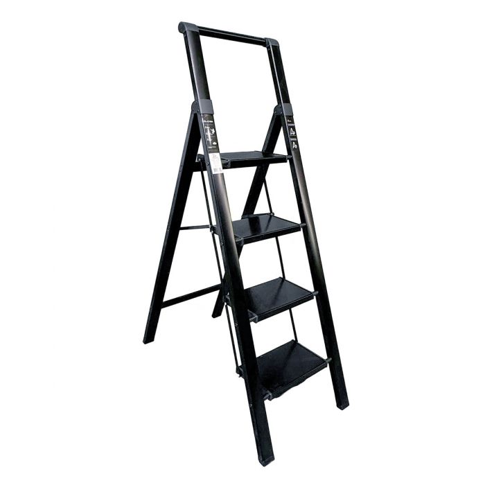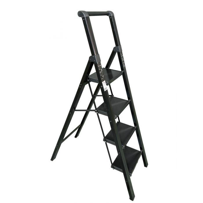 Стремянка алюминиевая SevenBerg Calipso 4 широкие ступени чёрная
