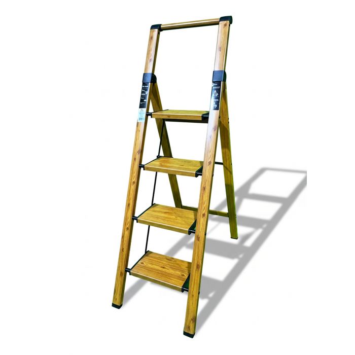 Алюминиевая стремянка SevenBerg Calipso 4 с широкими ступенями цвет дерево