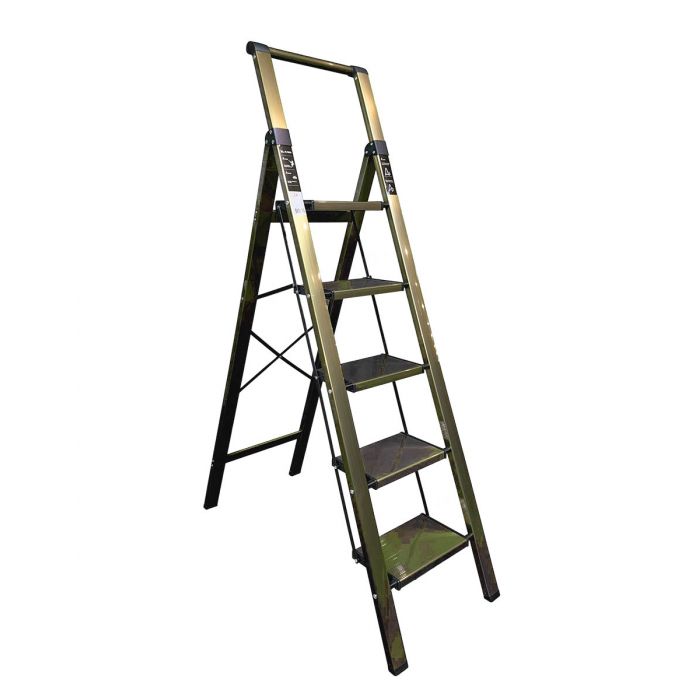 Стремянка алюминиевая SevenBerg Calipso 5 широких ступеней золотая