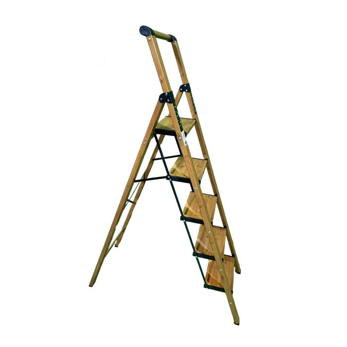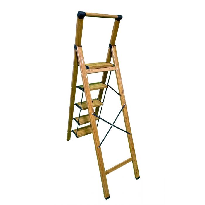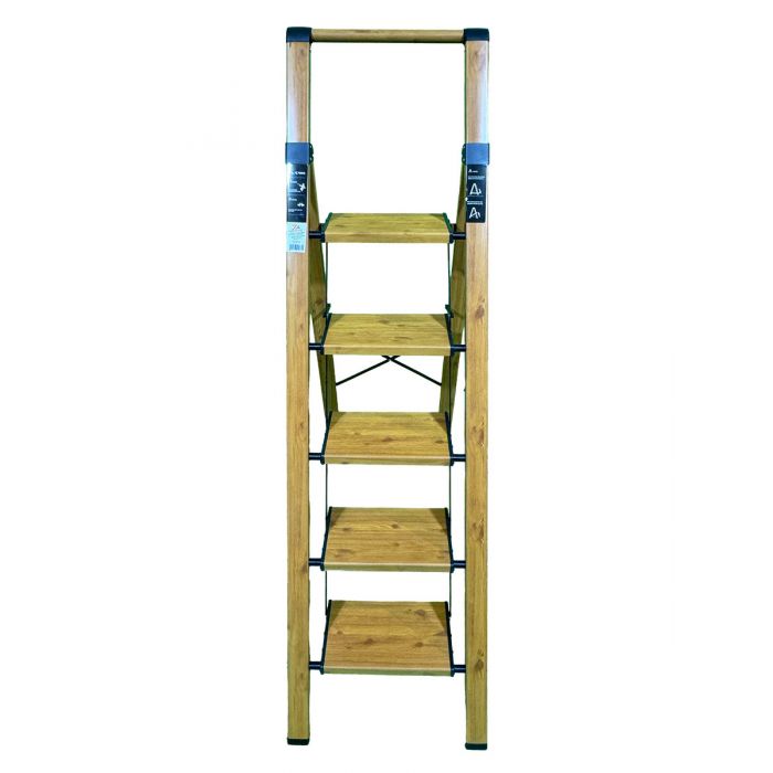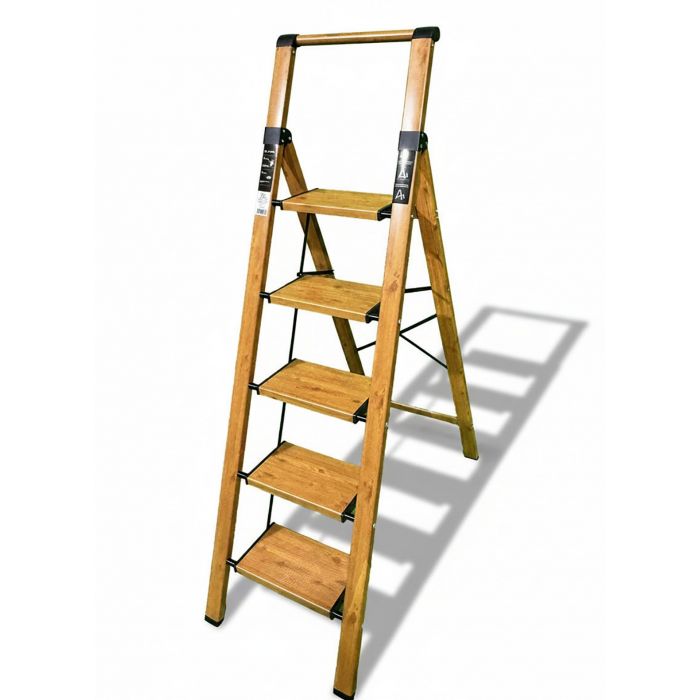 Стремянка алюминиевая SevenBerg Calipso 5 широких ступеней, цвет Дерево