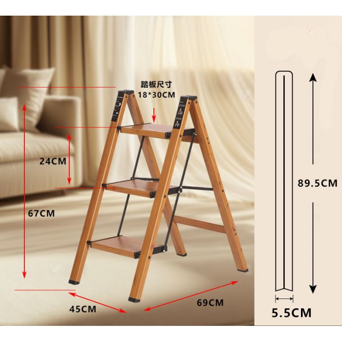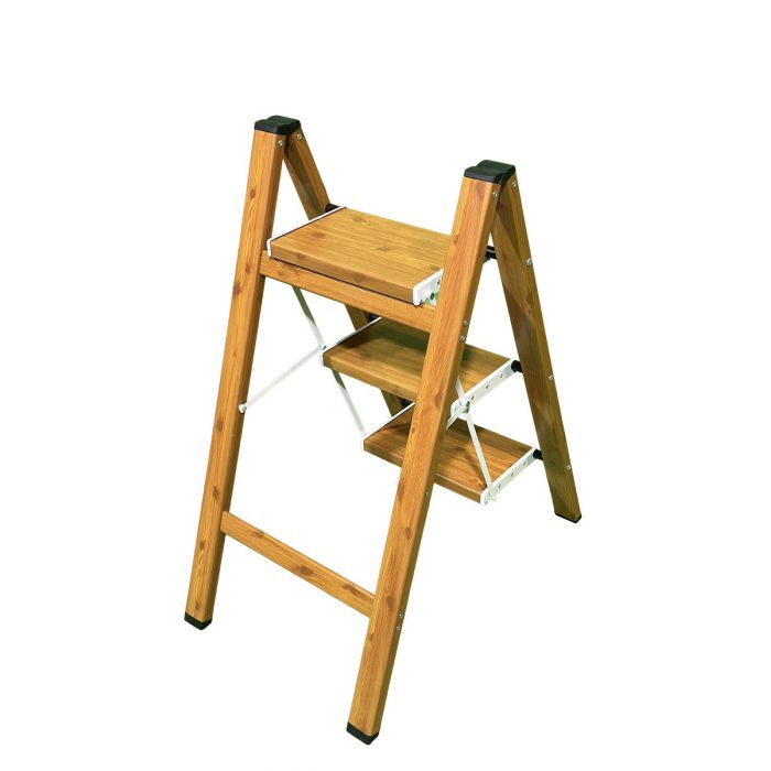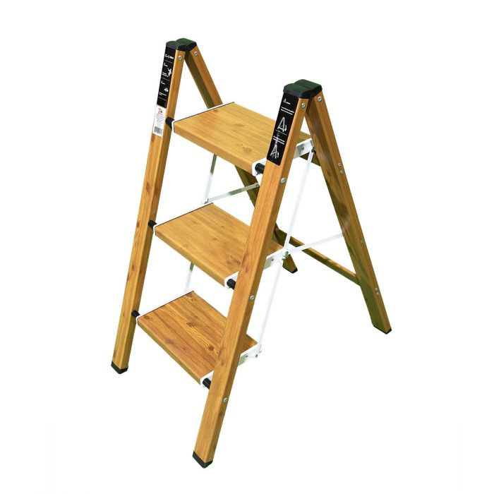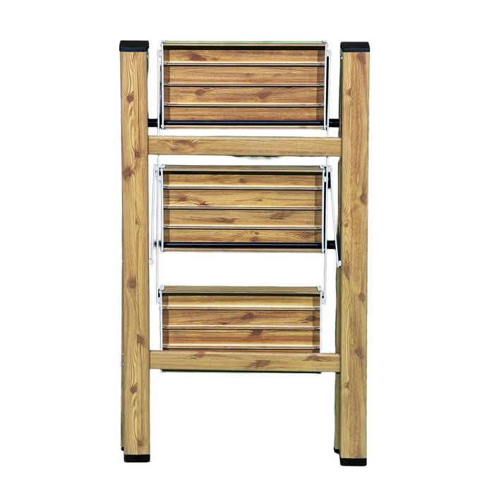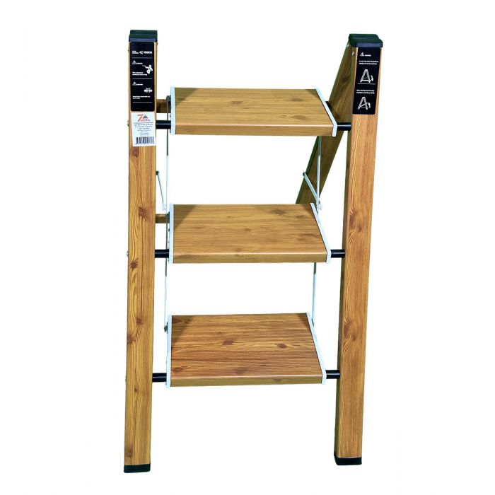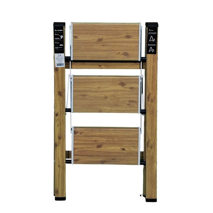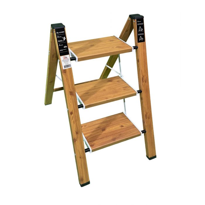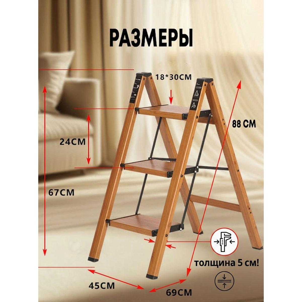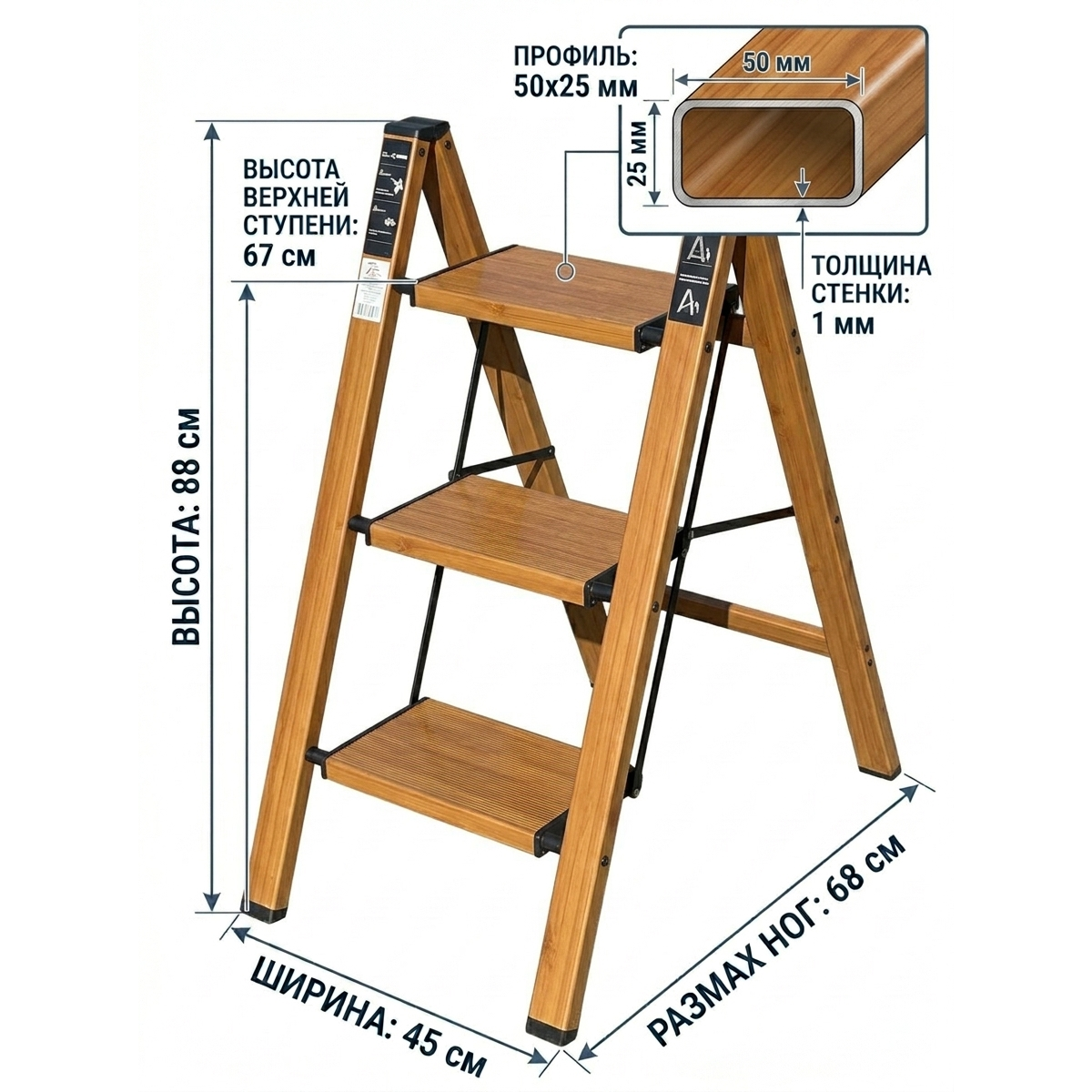 - Покрытие: эмаль под цвет благородного дерева, что придаёт стремянке стильный вид, подходящий как для современного, так и для классического интерьера.