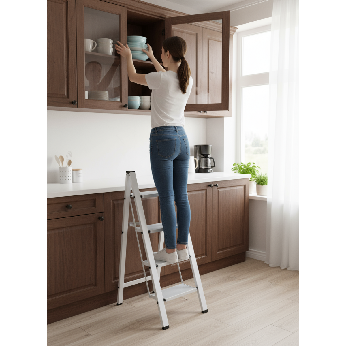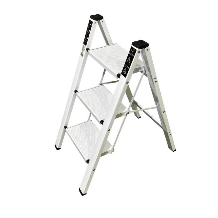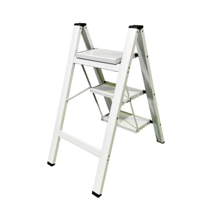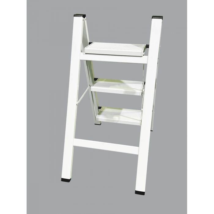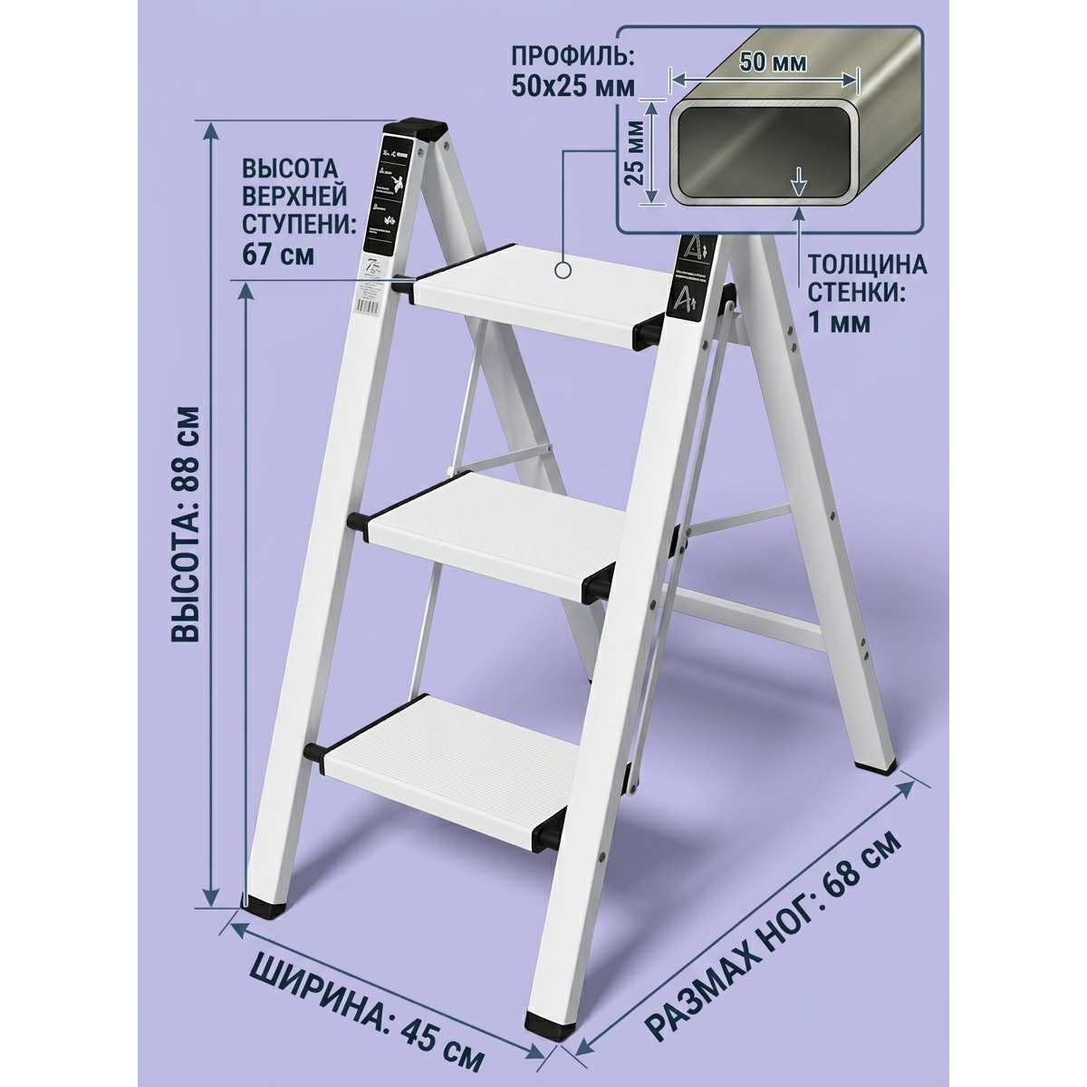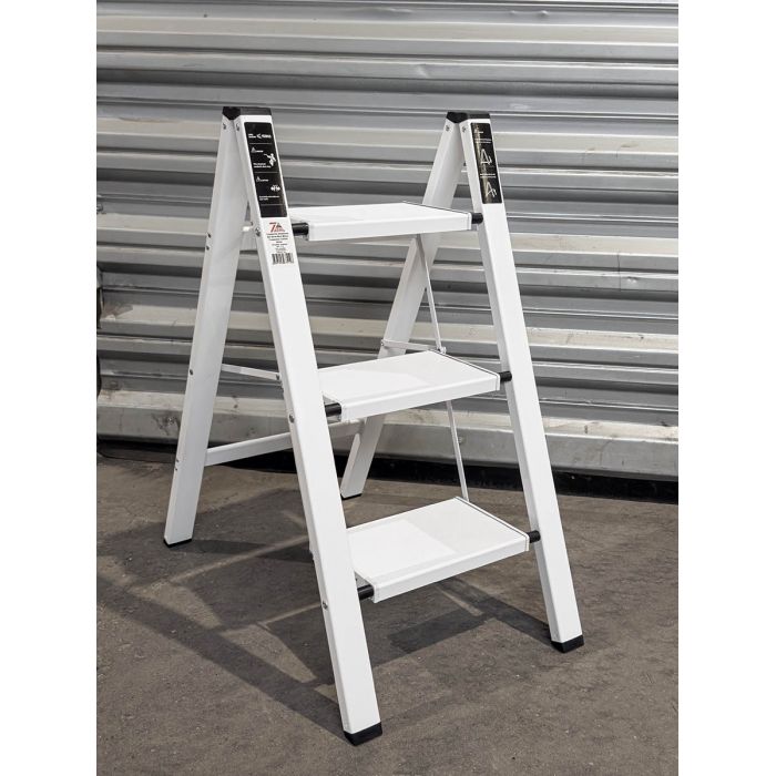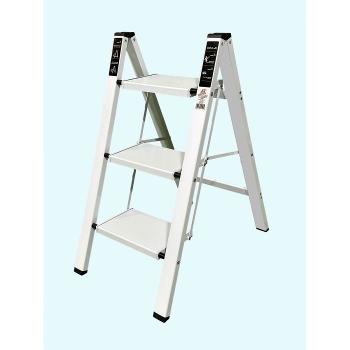Стремянка алюминиевая SevenBerg Milano 3 широкие ступени белая