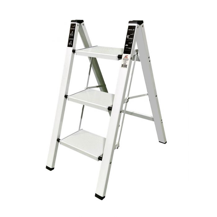 Стремянка с широкой ступенью, очень устойчивая и лёгкая, можно применять в быту, ремонте и на других повседневных работах. Имеет современный стиль и подойдёт в интерьер квартиры, оформленной как в современном стиле, так и в классическом.