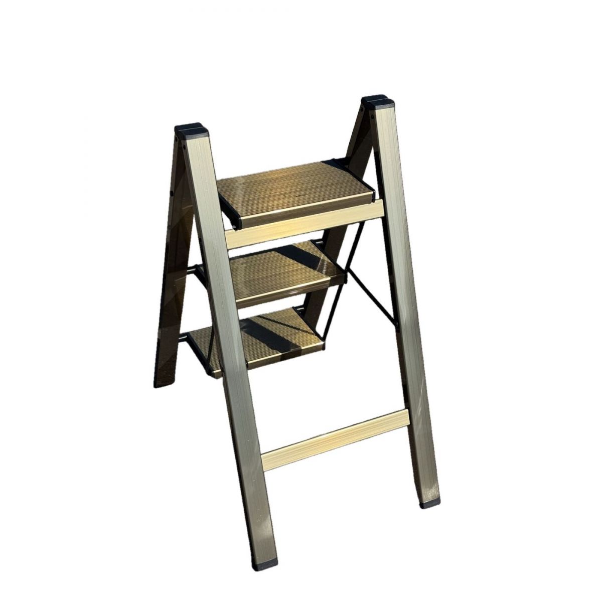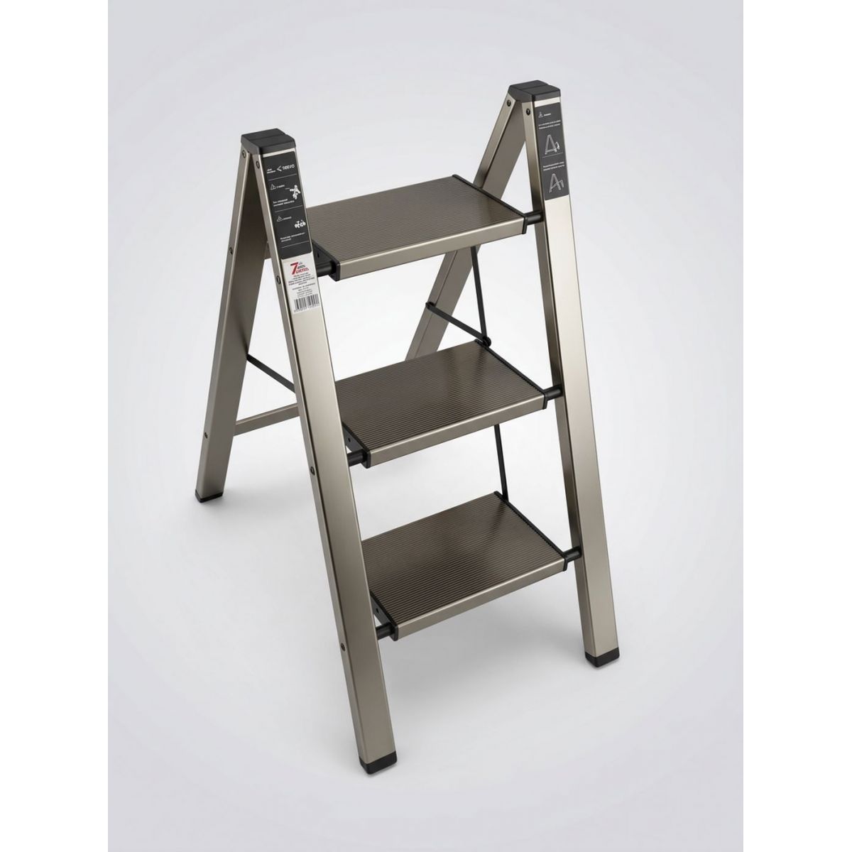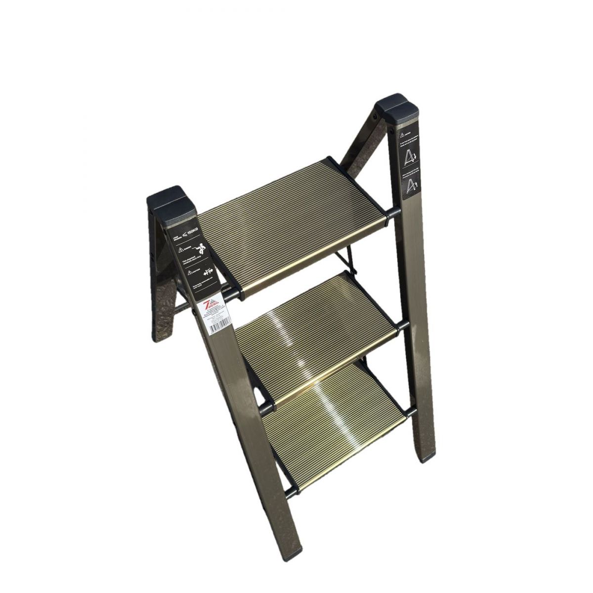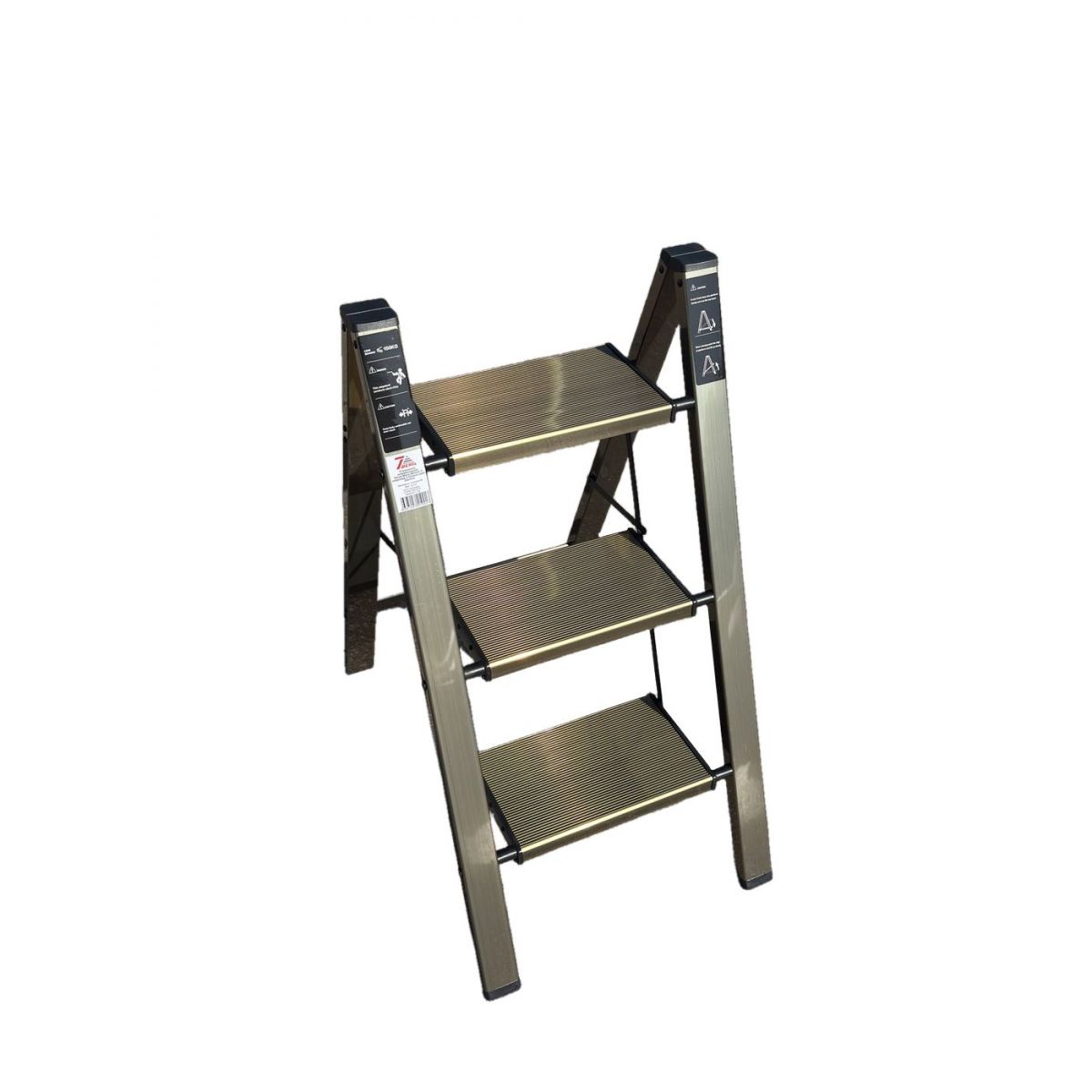 Стремянка алюминиевая SevenBerg Milano 3 широкие ступени золотая