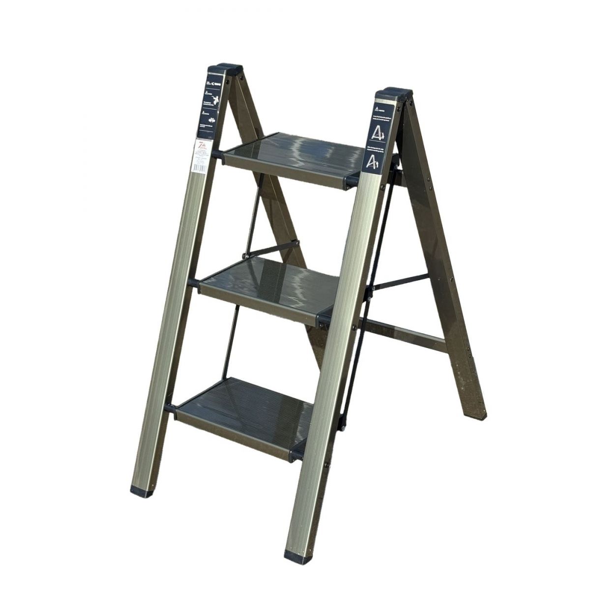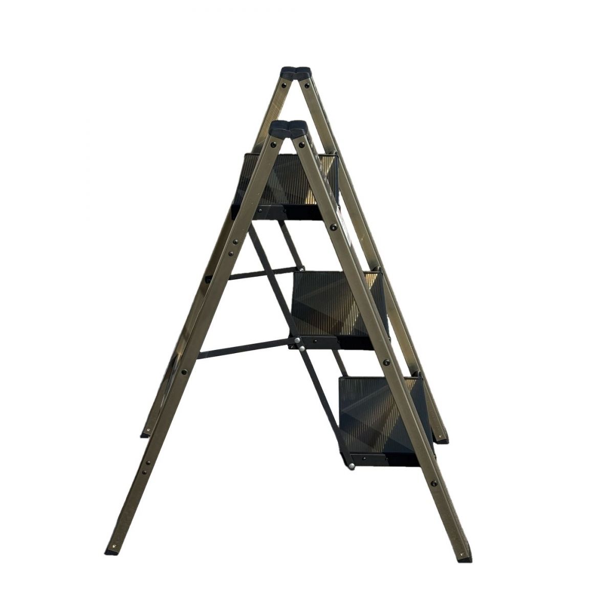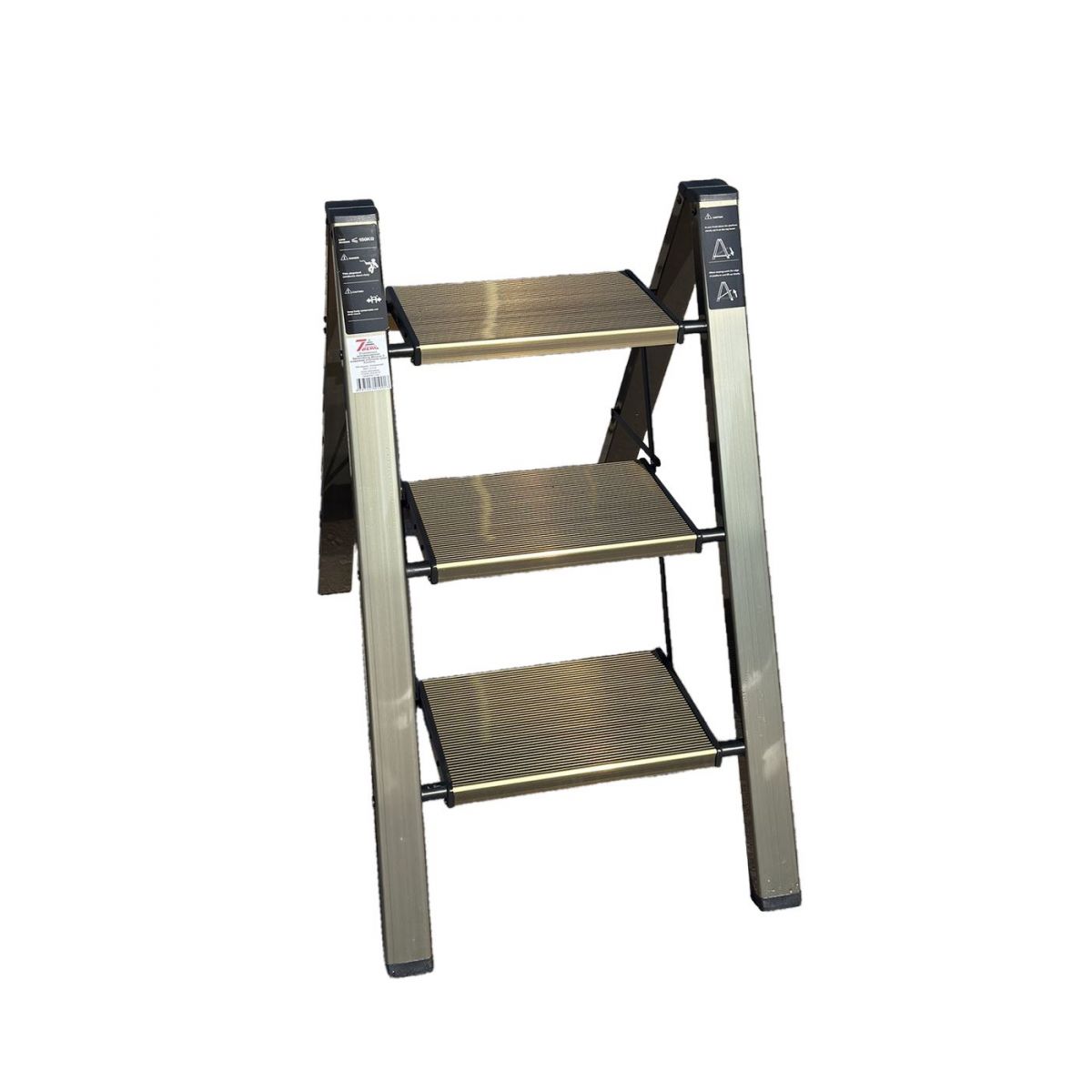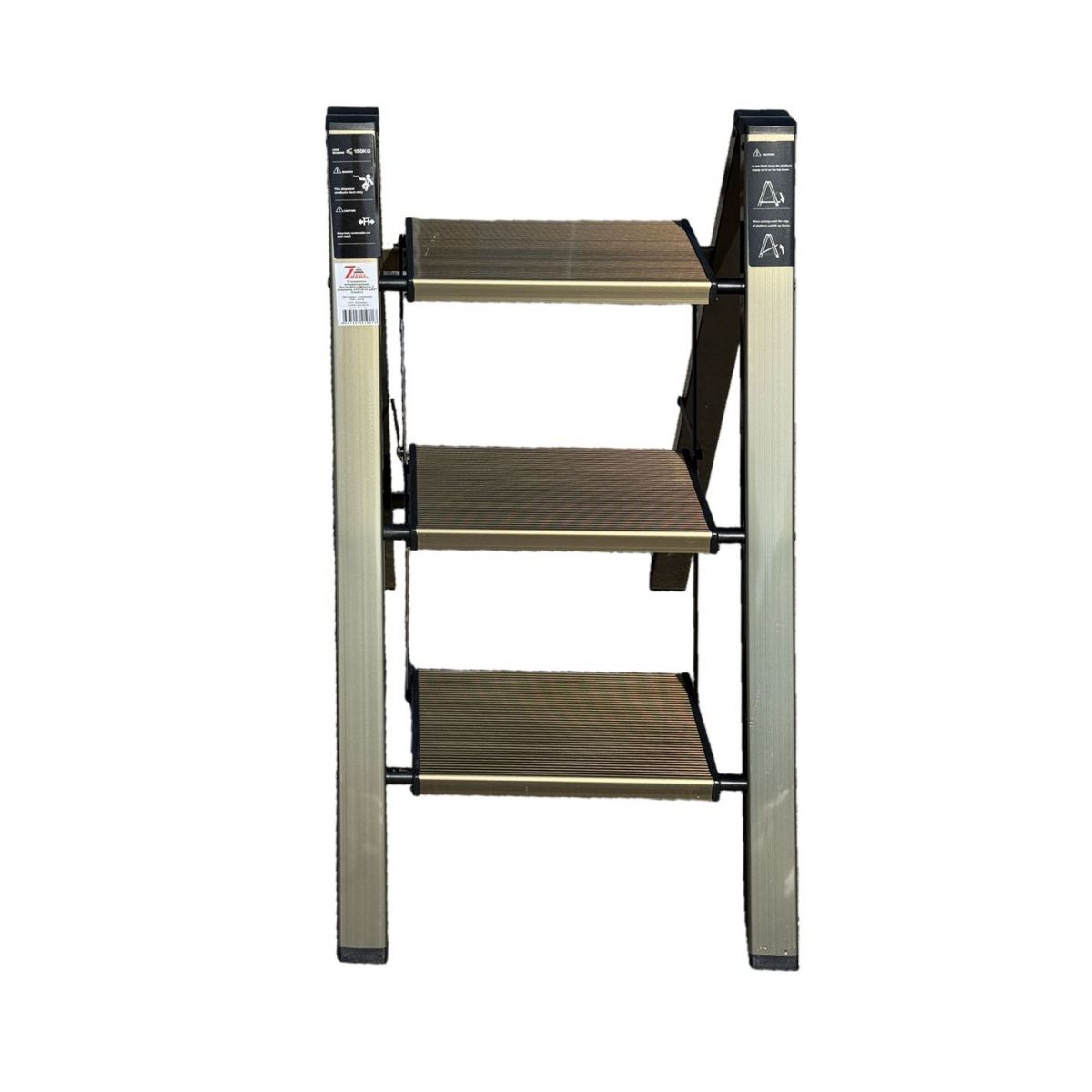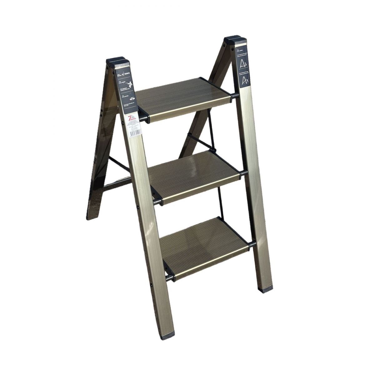 Стремянка алюминиевая SevenBerg Milano 3 широкие ступени золотая