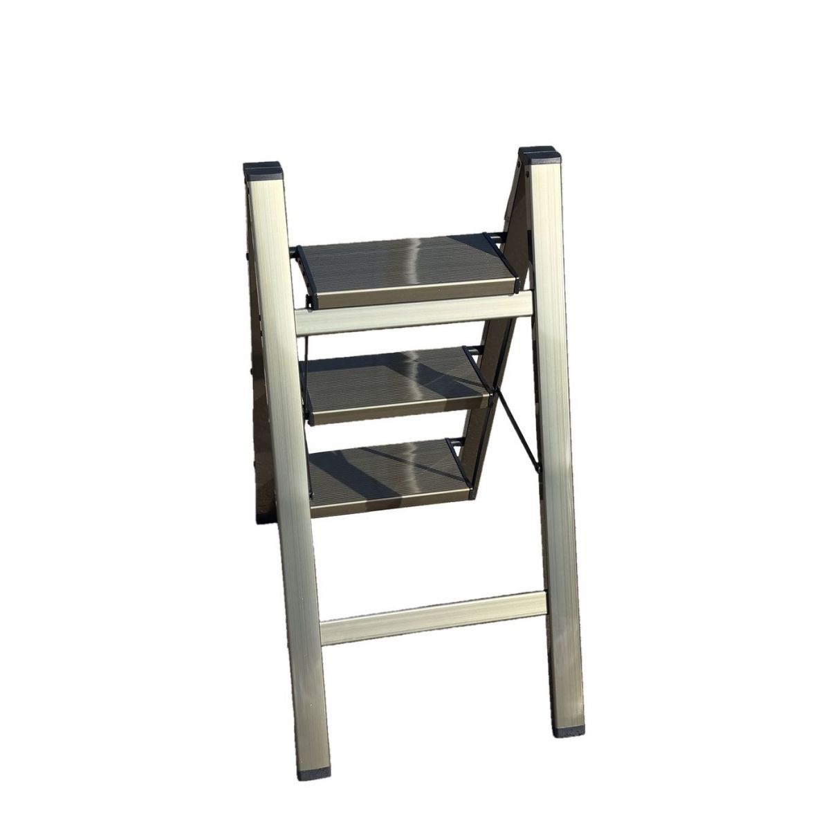 - Легкая и плоская: Вес всего 3,5 кг. В сложенном виде толщина стремянки составляет всего 5 см — легко хранить в шкафу или за дверью.