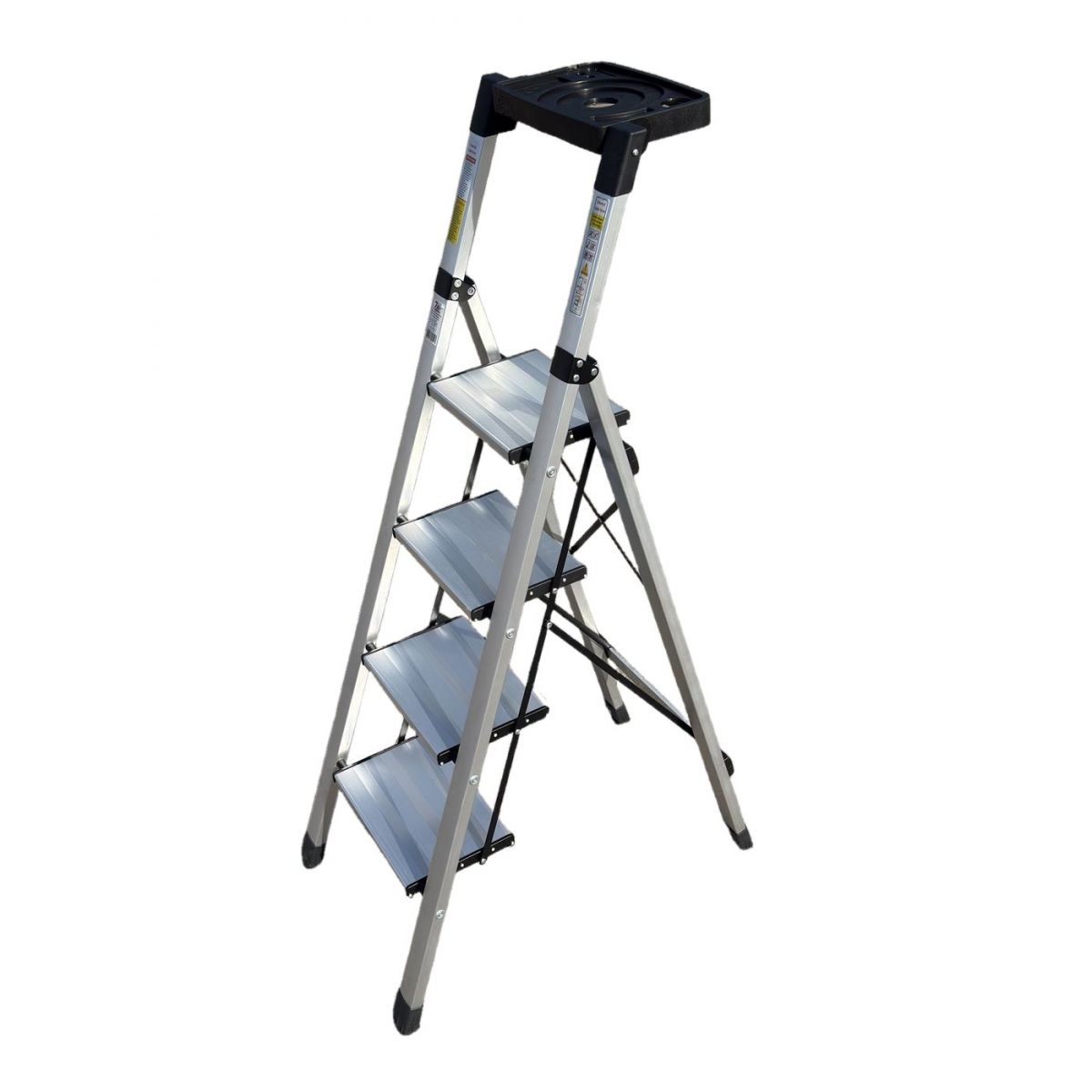 Стремянка алюминиевая Verona 4 широкие ступени серебристая с лотком для инструментов