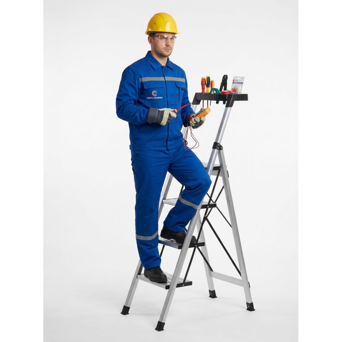 • Вместительный лоток-органайзер: В поручень безопасности встроен лоток размером 29×19,5 см. Теперь все необходимые инструменты (шуруповерт, саморезы, кисти, уровень) всегда под рукой — не нужно спускаться вниз за каждой мелочью.