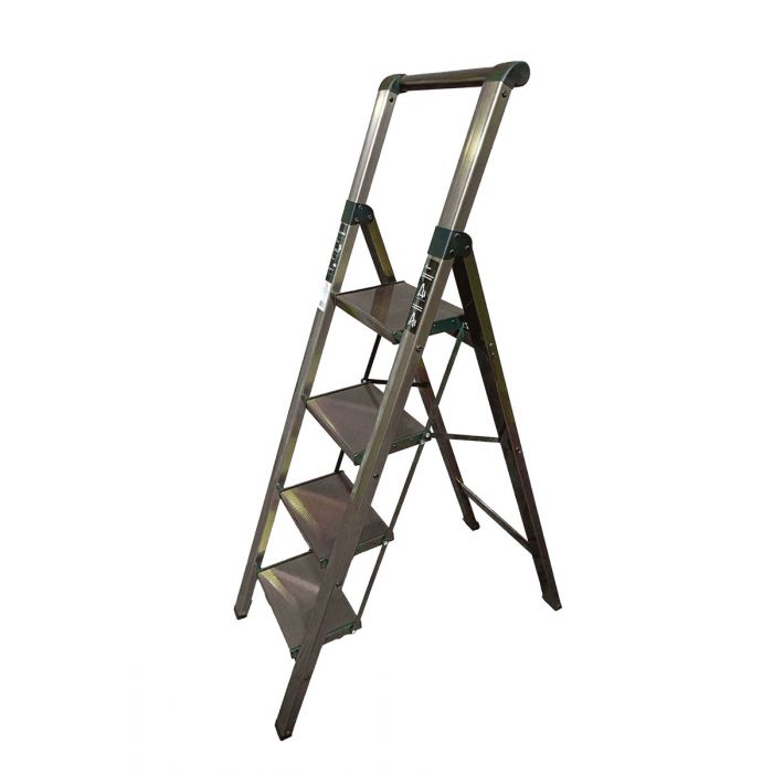 Стремянка алюминиевая SevenBerg Calipso 4 широкие ступени золотая