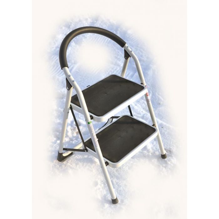 На направляющих имеются незначительные потертости (царапины) и проступление на краске ржавых пятен, не влияющие на эксплуатацию стремянки.