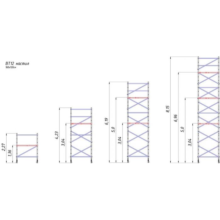 +Надстройки (арт. ВТ6 1612040)= рабочая высота 5,00 м (68,2 кг)