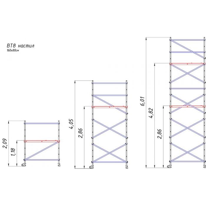 +Надстройки (арт. ВТ6 1608040) = рабочая высота 7,00 м(57 кг)*