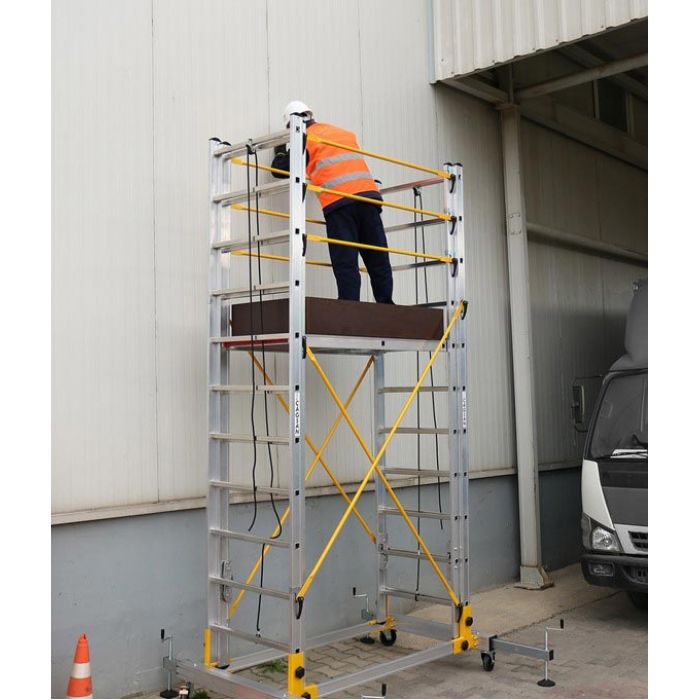 - Строительные леса построены из прочного алюминиевого профиля размером 100х25 мм