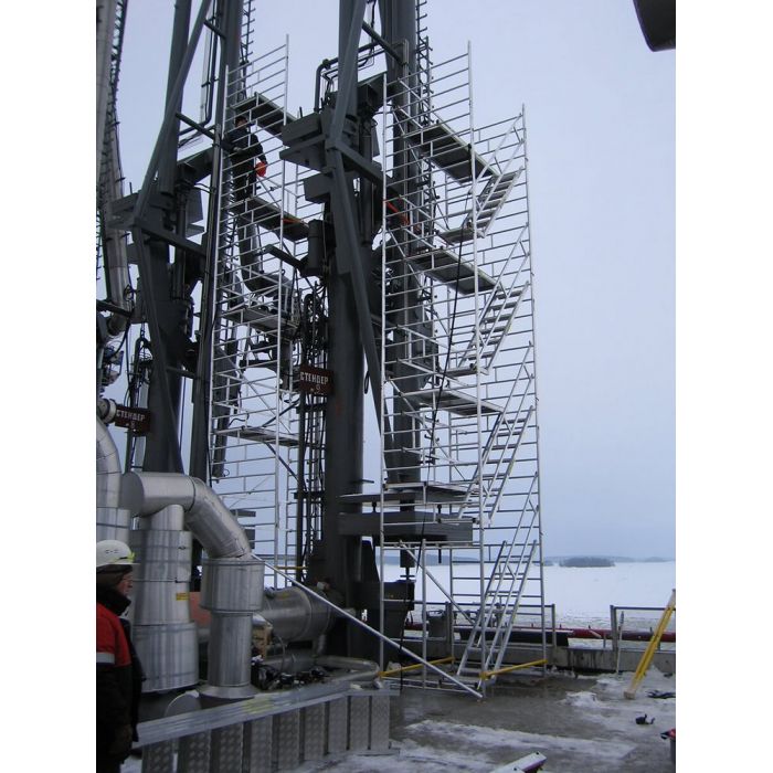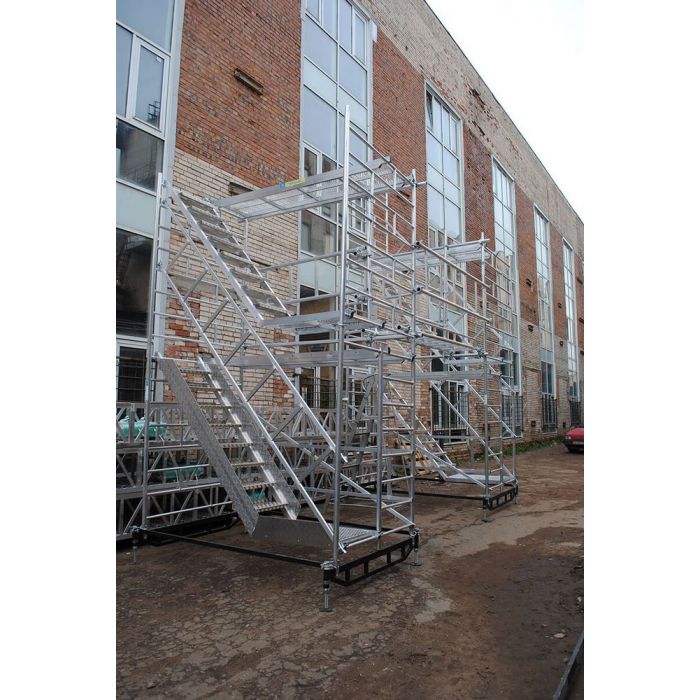 Вышки модульные алюминиевые с наклонными лестницами надежны и очень удобны для частых подъемов и спусков с громоздкими и тяжелыми грузами.