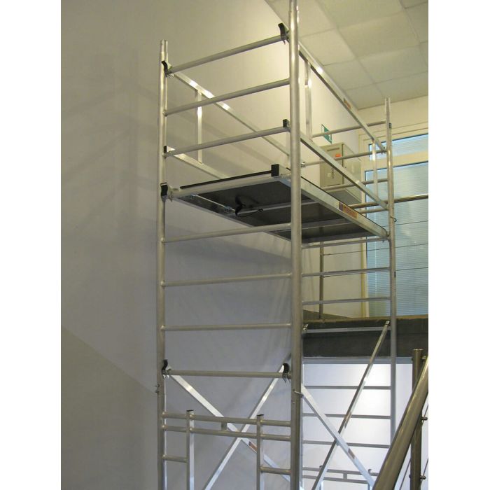 • Наличие уникальных проходных рам позволяет использовать вышки алюминиевые ВМА 700П в труднодоступных участках зданий, например, лестничных пролетах, эскалаторах